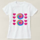 A white t-shirt with hearts and a swirled rainbow is in beautiful, vivid colors to make your look stand out. The white t-shirt with pink hearts can be worn on Valentines Day or any day you want.