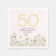 Celebrate in style with this elegant 50th Birthday Party napkin, designed to keep the big day a secret until the very last moment. The design features a shimmering golden “50” glowing softly in the background. A delicate border of watercolor white wildflowers and green leaves frames the bottom, all set against a soft pink background for a refined, timeless look. The party details are displayed in a crisp white serif font, ensuring easy readability and sophistication. Perfect for family members, this napkin allows every detail—name, date, address, and RSVP—to be customised with ease. Thanks for your interest—give this design a like if you love it!