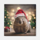 This image shows the festive warmth of a wombat in a Santa hat, set beside a Christmas tree and gifts with a magical bokeh background.