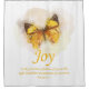 Uplifting inspirational Christian Bible verse from Psalms 16:11, ”In thy presence is fullness of joy; at thy right hand there are pleasures for evermore”. Spread gospel hope motivation with this yellow-orange butterfly watercolor-theme faith-based quote.