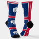 Crafted with attention to detail, these socks are more than just a fashion statement; they're a celebration of Wyoming's rugged beauty and independent spirit. The design creatively incorporates the elements of Wyoming's flag, including the bison silhouette and the red, white, and blue colours.