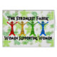 A rainbow of women with hands connected illustrate the words "The strongest fabric, women supporting women." Show your woman power as a piece of this powerful weaving.