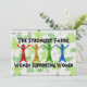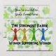 A rainbow of women with hands connected illustrate the words "The strongest fabric, women supporting women." Show your woman power as a piece of this powerful weaving.
