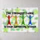 A rainbow of women with hands connected illustrate the words "The strongest fabric, women supporting women." Show your woman power as a piece of this powerful weaving.