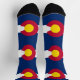 Crafted with meticulous attention to detail, these socks celebrate Colorado's rich history and cultural identity. The design proudly showcases the iconic flag, featuring horizontal stripes of blue and white with a circular red "C" filled with a golden disc, symbolising the state's beautiful landscape and abundant sunshine.