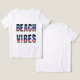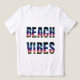This women's t-shirt is shown in white with a cute beach vibes print.