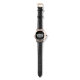Womens black leather strap watch shown with a pageant queens crown print on a black face. Customise this watch or buy as is.