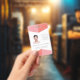 Add your own photo, name and business logo details to this identification badge template easily here and now. Use a profile (vertical) identification style photograph for best results.