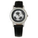 Womens classic black leather strap watch shown with a soccer ball print. Choose this watch from several styles. Customise this watch or buy as is. Stock Image