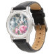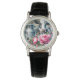 This women's watch is shown with a cute farm cow and pink peony flowers art print.