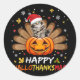 Womens Cute Cat Happy Hallothanksmas Halloween Tha Classic Round Sticker
