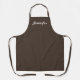 Show your style while cooking with this Women's Dark Brown Script Personalised Chef Apron. Name is designed in elegant white script centred on front of solid brown apron. Name is in white trendy script lettering on upper centre. Great for protecting clothing from stains and spills while in the cooking. Available in different colours.