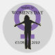 Silhouette of woman standing proud over purple Venus symbol to represent International Women's Day. Text and background colour is customisable.