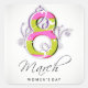 Women's day with flowery number 8 square sticker