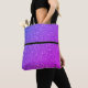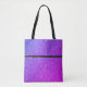 This tote bag is shown with a fun mix of Purples faux glitter print and a black stripe.