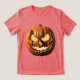 This is a Halloween Jack O Lantern T-Shirt. The art features one orange jack o lantern. The background is transparent. The t-shirt is a red triblend t-shirt. The red t-shirt is soft and comfortable. The jack o lantern image is on the front and back of the t-shirt. You can change the image by clicking the Personalise button.