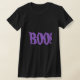 Women's Halloween t-shirt is shown with a Boo! print.