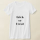 This women's t-shirt is shown in white with text: Halloween Trick or Treat.