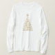 Women's long sleeve shirt shown in white with a festive holiday gold Christmas tree print.