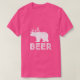 Quirky and bold womens graphic tee featuring a playful design of a bear and deer enjoying a beer in a hunting theme. Perfect for those who love nature and hunting.