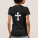 The front of this women's tshirt says I Love My Church in a red font and the back has a beautiful white cross.