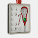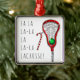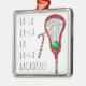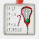 Funny lacrosse Christmas collectable ornament featuring lax stick, ball ornament, and candy cane. Add name to personalise for your favourite player, coach, team or sports fan.