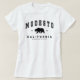 White Modesto women's T-Shirt with grizzly bear and curved text in a slab font style. This t-Shirt is great if you are from Modesto or to give as a souvenir gift to someone who will like it.