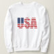 Women's basic pullover sweatshirt is shown in white with a patriotic USA Flag graphic print,perfect for July 4th holiday or any other patriotic moment, this sweatshirt is made of quality materials and craftsmanship and is available in more colours.