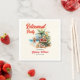 Celebrate her journey with a serene and beautiful women's retirement party! Our watercolor napkins features a peaceful beach dune adorned with bright aloha flowers and a woman sitting staring at the sea dreaming about the future. "Retirement Party" is elegantly scripted, with customisable details in a simple serif font. Create a memorable and heartfelt celebration—customise and order your napkins today!