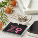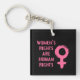 Keychain with a feminist message, features pink female symbol and "women's rights are human rights" text in brush stroke style font
