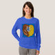 I love this shirt. I had written to the artist asking her if this picture was available on a shirt, and she wrote me back telling me where I could find the shirt. These shirts can be custom made to have a different saying. I loved this saying and went with it. The artist wrote me back later to tell me that she had seen my order go through. How's that for service? Pretty special. It's just as displayed. Perfect!