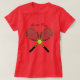 Tennis rackets and balls make up this fun t-shirt. Customisable so you can add your own text and change the background colour. Great for the tennis nut in your life.