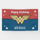 Celebrate your child's Birthday with this awesome Birthday banner featuring Wonder Woman's Golden logo. Personalize by adding your child's name!