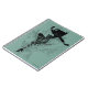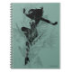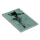 A vintage silhouette of Wonder woman about to land from a tall jump, accompanied by green leaves and ferns.