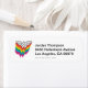 DC Pride | Wonder Woman's iconic logo with layers of rainbow colours projected behind it.
