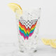 DC Pride | Wonder Woman's iconic logo with layers of rainbow colors projected behind it.