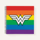 DC Pride | Wonder Woman's iconic logo with layers of rainbow colours inside it.