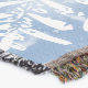 A quality printed throw has its advantages. This is a much finer weave throw than its loopier cousins, and though lighter, it is worth the investment for custom room accessorizing. The back is much prettier than the typical brown, and the fringe on the long sides very vivid, the selvage nicely done. Before photographing, I washed the throw in cold water, delicate, with a thicker woven throw the same size. On tumble dry low, this throw was dry in half the time as the other. This is a very practical quality if you use throws for furniture covers or to wrap up in frequently. The sleekness of the fabric makes it a great layer for accenting or protecting without the feeling of sitting on too much stuff. Perfect for napping or when you feel a light chill coming on. The color printing is beautiful and on this fabric, matched the design and color of my Photoshop image. This is an advantage for blending room fabrics and colors. The fringe on the short sides prints the colors from the design image and therefore varies from the side fringe. I streaked a white fractal line through the plaid pattern to give the illusion of weaving. This printed as crisp as an illusory thread, and put some white in the short side fringe, showing another advantage of print vs loomed- for artistic purposes, line lines, detail, and color integrity can be planned and preserved. My loomed throws have color limitations and more of a needlepoint texture. Print throws reproduce an exact image. The throw felt a little stiff straight out of the package, but this went away in the first delicate wash. Of course I searched the wash water for ink or bleeding and there was none.