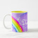 Bright and colourful rainbow daughter mug. Perfect gift for your vibrant and wonderful daughter. Mug reads: “Wonderful Daughter you are our ray of beauty and light”. Mug designed exclusively by Sarah Trett.