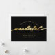 Modern, elegant script calligraphy based business holiday card reads We are so very grateful alongside your custom text and message. On the back is space for another message and your corporate logo. This is the elegant black and printed gold version.