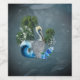 Wonderful pelican with wave and palm trees