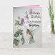 Celebrate your sister’s birthday with a lovely hummingbird watercolor card. Elegant and stylish, the garden design was created with soft colors of cream, green and pink. Perfect for a woman who loves chic pictures of charming birds and beautiful gardens.