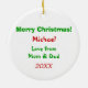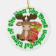 This kids holiday ornament features an image of a happy Christmas moose with a brightly wrapped gift in the centre of bright green stylised text that says The Most Wonderful Time of the Year. The back side has personalised text in red and green, placed on a white background. Make the back of this cute ornament say whatever you'd like! *Thanks to Real Deal Clip Art for the clip art used in this design.