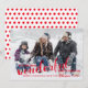 This festive holiday Christmas card features the Christmas greeting message "It's the most wonderful time of the year." Below the message is the holiday wish "Merry Christmas" in modern block font with the family name in a script font. The back of the card features festive pattern of red polka dots on a white background.