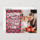 a vintage pattern design with a mix of white typography and a plaid background. The image can be edited as well as other features on the christmas card.