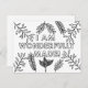 A colouring postcard based on the popular Psalm 139:14 I am fearfully and wonderfully made, great for affirming children. This design features the phrase "I am wonderfully made" surrounded by a variety of leaves. This colouring postcard is ideal for Sunday School, a party bag favour and much more.