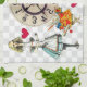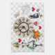 16” x 24” kitchen towel with vintage images of all things Wonderland on a grey and white chequerboard background. There’s a backwards clock, a “Drink Me” bottle, a brass skeleton key, Alice when she was 10 feet tall, the White Rabbit, a disappearing Cheshire Cat, and more.