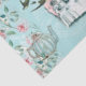 Vintage floral pastel paper in aqua soft blue green and pink features Alice in Wonderland's tea party from the children's book, with the Mad Hatter, March Hare and Dormouse, with pink roses and leaves, text from the handwritten manuscript, and beautiful vintage swallows that seem to pour out of a teapot and fly into the sky, swirling around Alice (the White Rabbit is lurking somewhere in the foliage and shy in the background is a vintage pocket watch), making a lovely vintage British tea and literature themed tissue paper perfect for gift wrapping and decoupage and crafts.