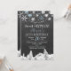 Snowflakes elegant winter sweet sixteen / 16th birthday party invitation template on dark grey chalkboard featuring borders of white and blue snowflakes and pine trees winter wonderland. Fill in your information in the spots, You can choose to customise it further changing fonts and colours of lettering. ---- The invitation is suitable for winter chic mountains rustic country inspired birthday parties. --- If you need assistance, please contact me!