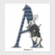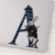 Monogram / letter / initial "A" in a vintage black and blue harlequin diamond patter with added vintage illustration of the White Rabbit from the beloved children's book Alice in Wonderland. Fun large vinyl sticker for laptops, electronics and any other surfaces that is appropriate for transparent stickers and labels (even mirrors!)